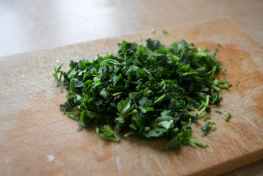 Համեմը և սխտորը մանրացնել, լցնել թթվասերի մեջ, համեմել աղով և սև պղպեղով: Գնդիկները մատուցել սոուսի հետ: